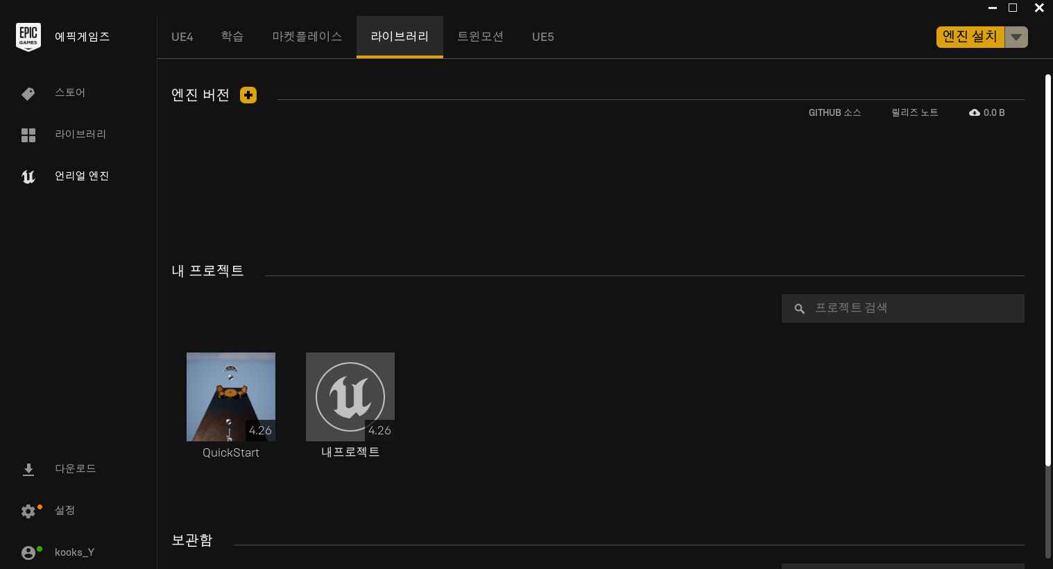 2. 에픽게임즈 런처 실행 및 언리얼 엔진 설치